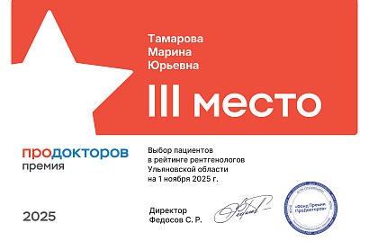 специальности «Рентгенология». Присвоена квалификация – «Врач